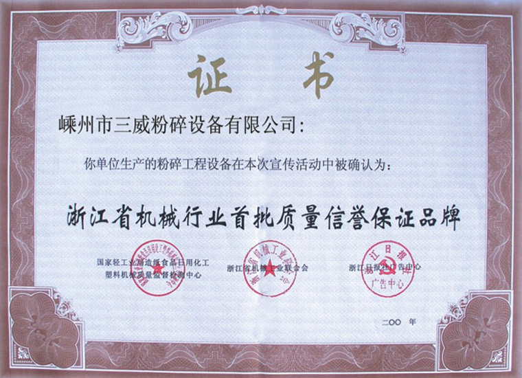 機(jī)械行業(yè)首批質(zhì)量信譽(yù)保證品牌