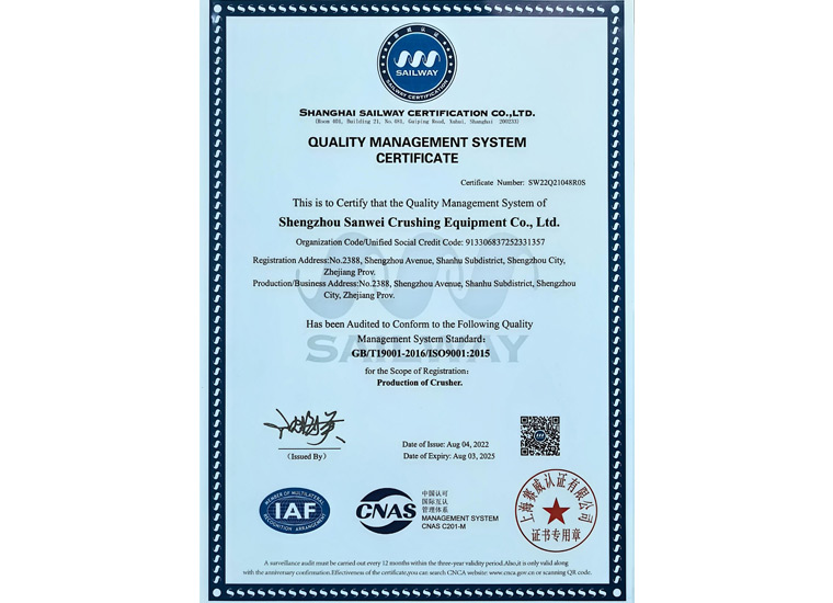 質(zhì)量管理體系認(rèn)證證書